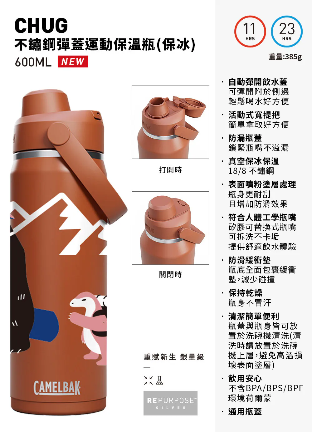 Camelbak Fighting ! Chug不鏽鋼彈蓋運動保溫瓶(保冰) 600ml - 森友露營趣(大童適用)
