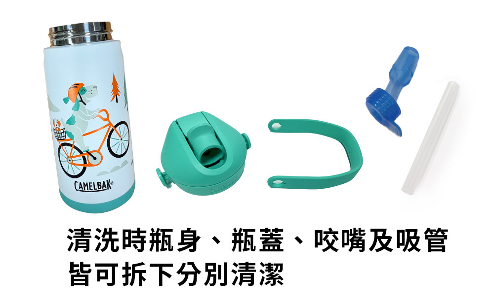 CamelBak 兒童吸管水瓶的咬嘴為醫療級矽膠製作,可自動閉合,小朋友的口水不會回流到水瓶中。各大親子論壇網站熱烈推薦!小朋友可以輕鬆抓握,或由家長隨身攜帶在背包中,藉由最自然的吸吮,培養小朋友喝水的習慣。