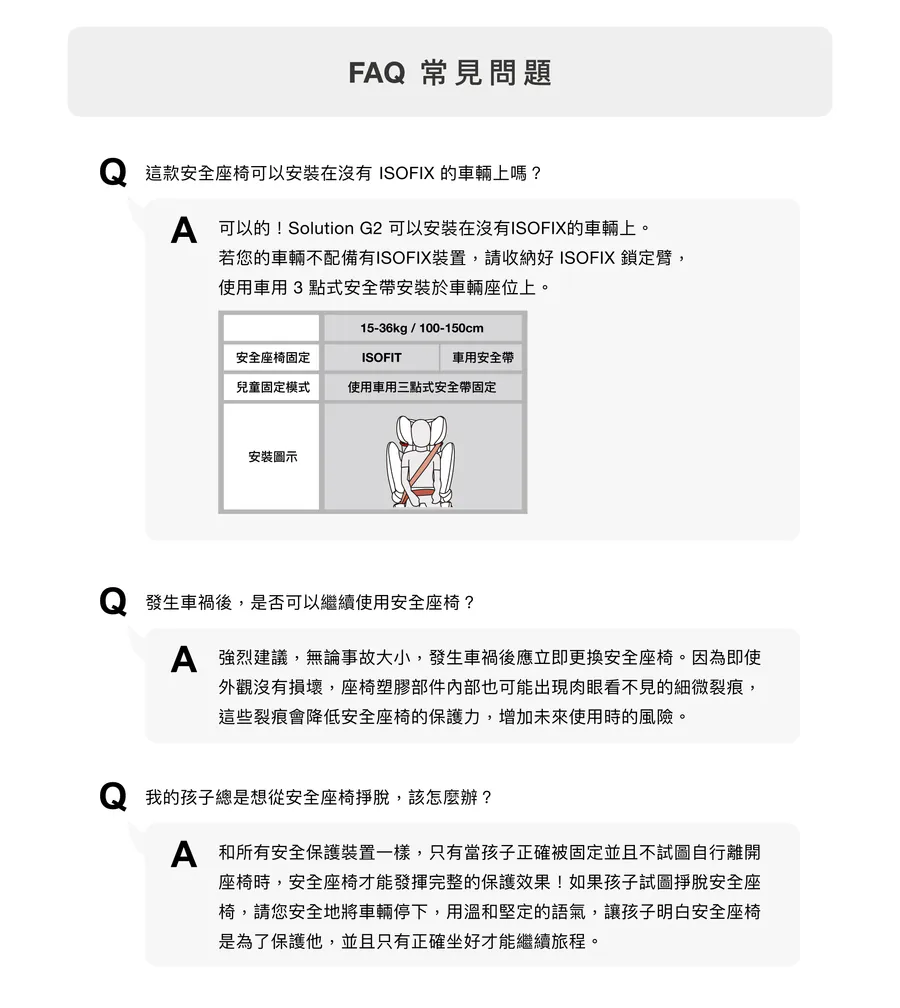 ◆內容物:Solution G2 i-Fix Plus 汽車安全座椅 一件