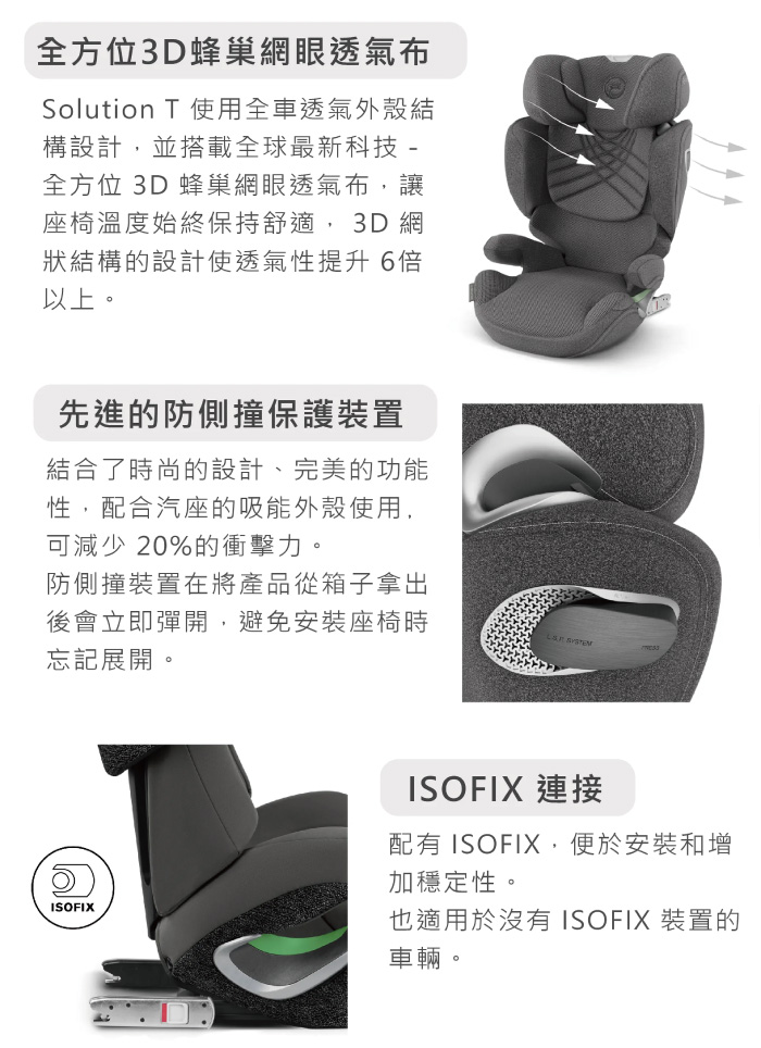 - 支援兩種安裝方式 : isofix / 車用安全帶皆適用