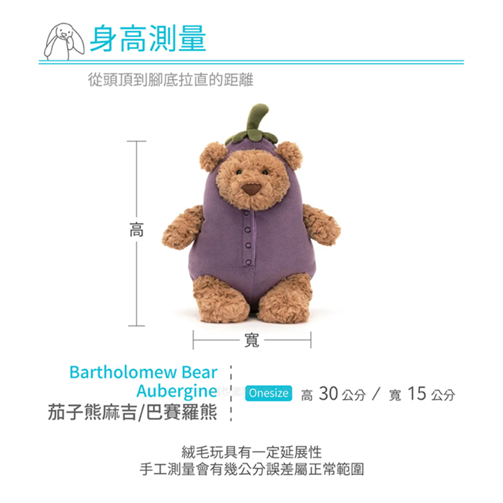 Jellycat Bartholomew Bear Aubergine 茄子巴賽羅熊