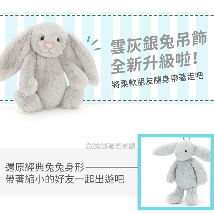 Jellycat Bashful Silver Bunny Bag Charm 雲灰銀兔 吊飾/鑰匙圈