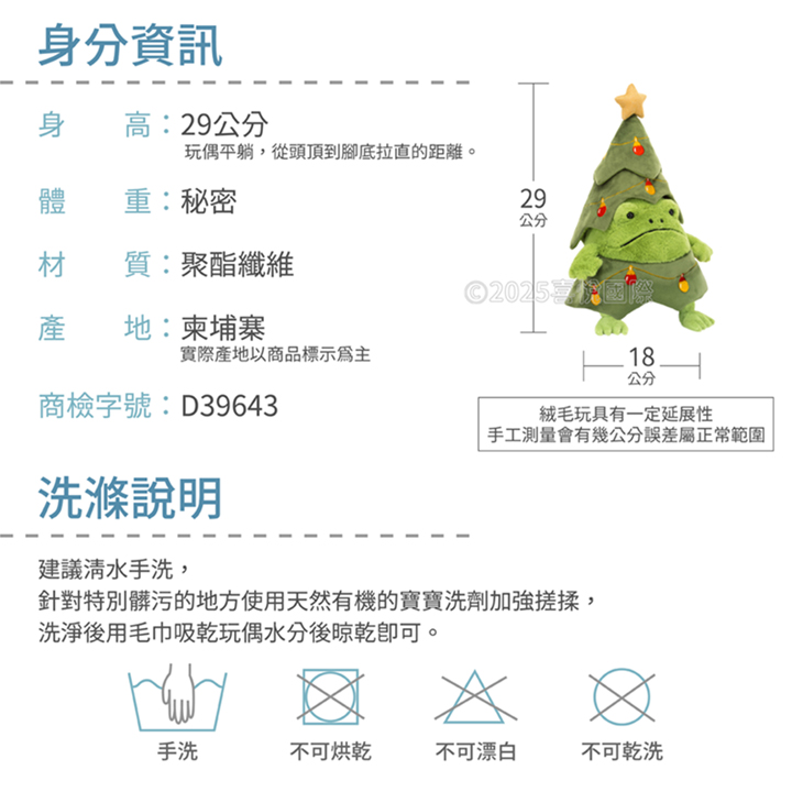 Jellycat Christmas Tree Ricky Rain Frog 聖誕樹哭哭蛙