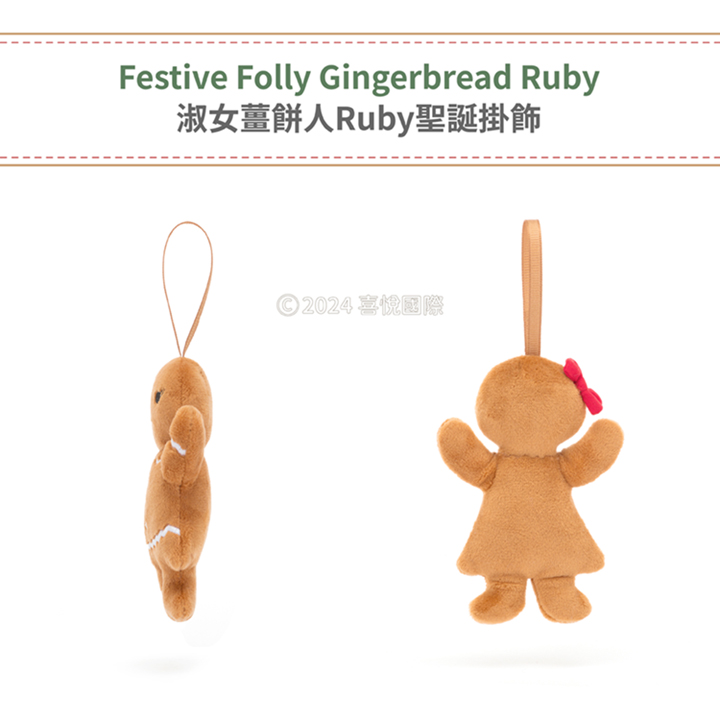 Jellycat Festive Folly Gingerbread Ruby 淑女薑餅人 Ruby 聖誕掛飾