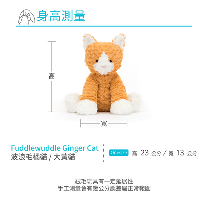 jellycat Fuddlewuddle Ginger Cat 波浪毛橘貓 / 大黃貓
