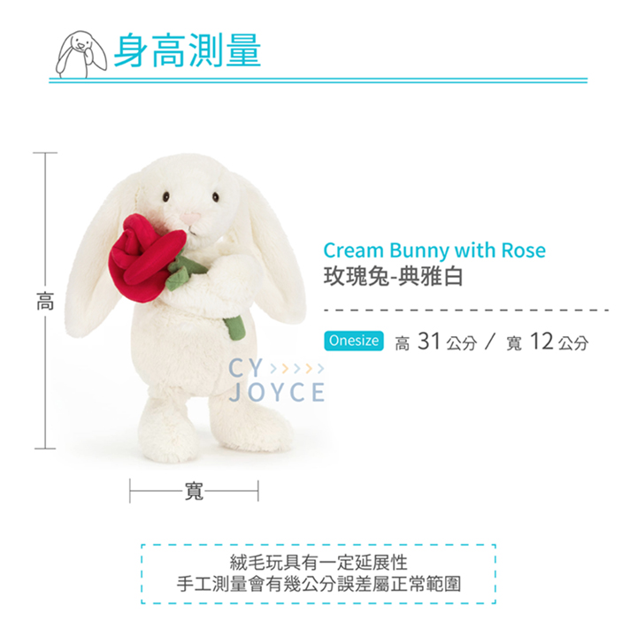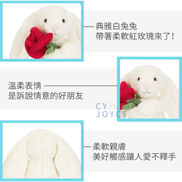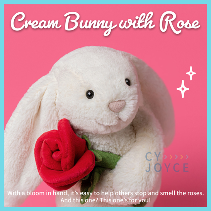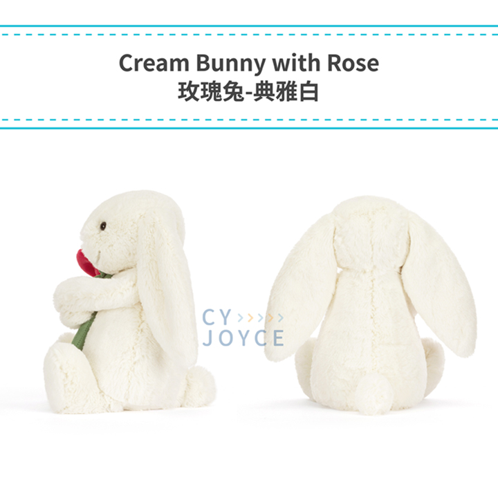 Jellycat Cream Bunny with Rose 玫瑰兔 - 典雅白