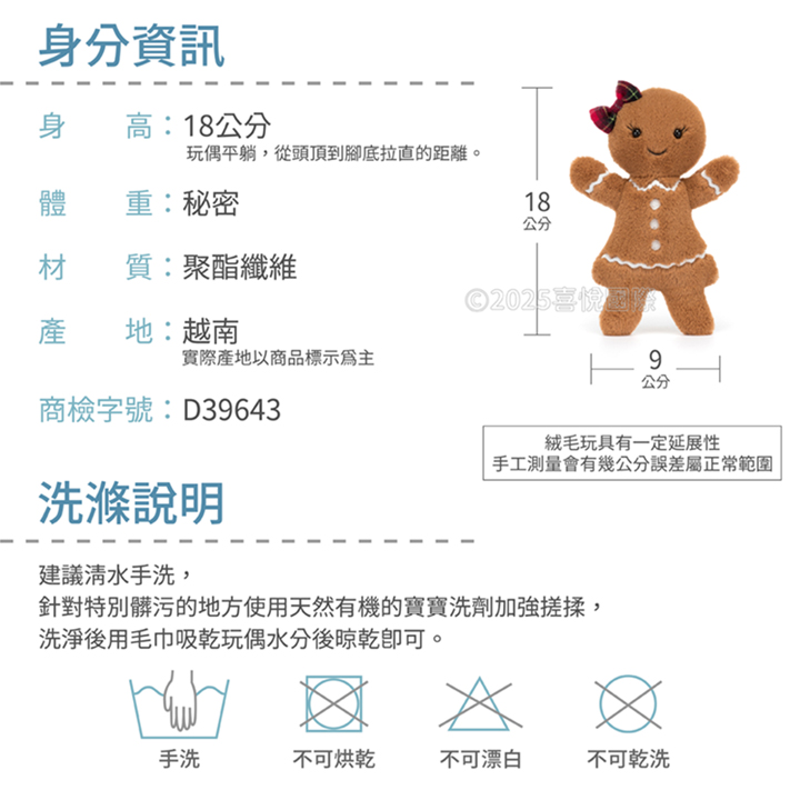Jellycat Jolly Gingerbread 淑女薑餅人 Ruby