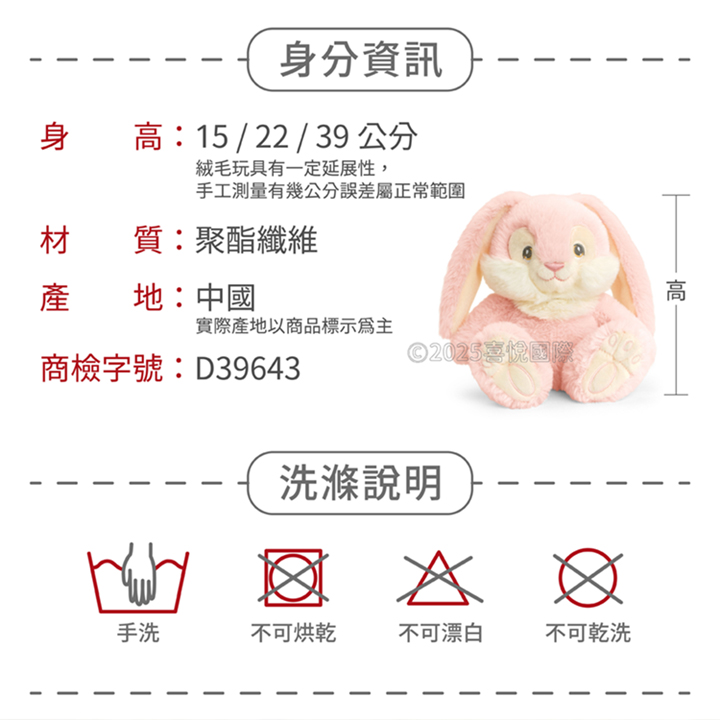 Keeleco Patchfoot Pink Rabbits 長耳兔 (嫩粉)15cm