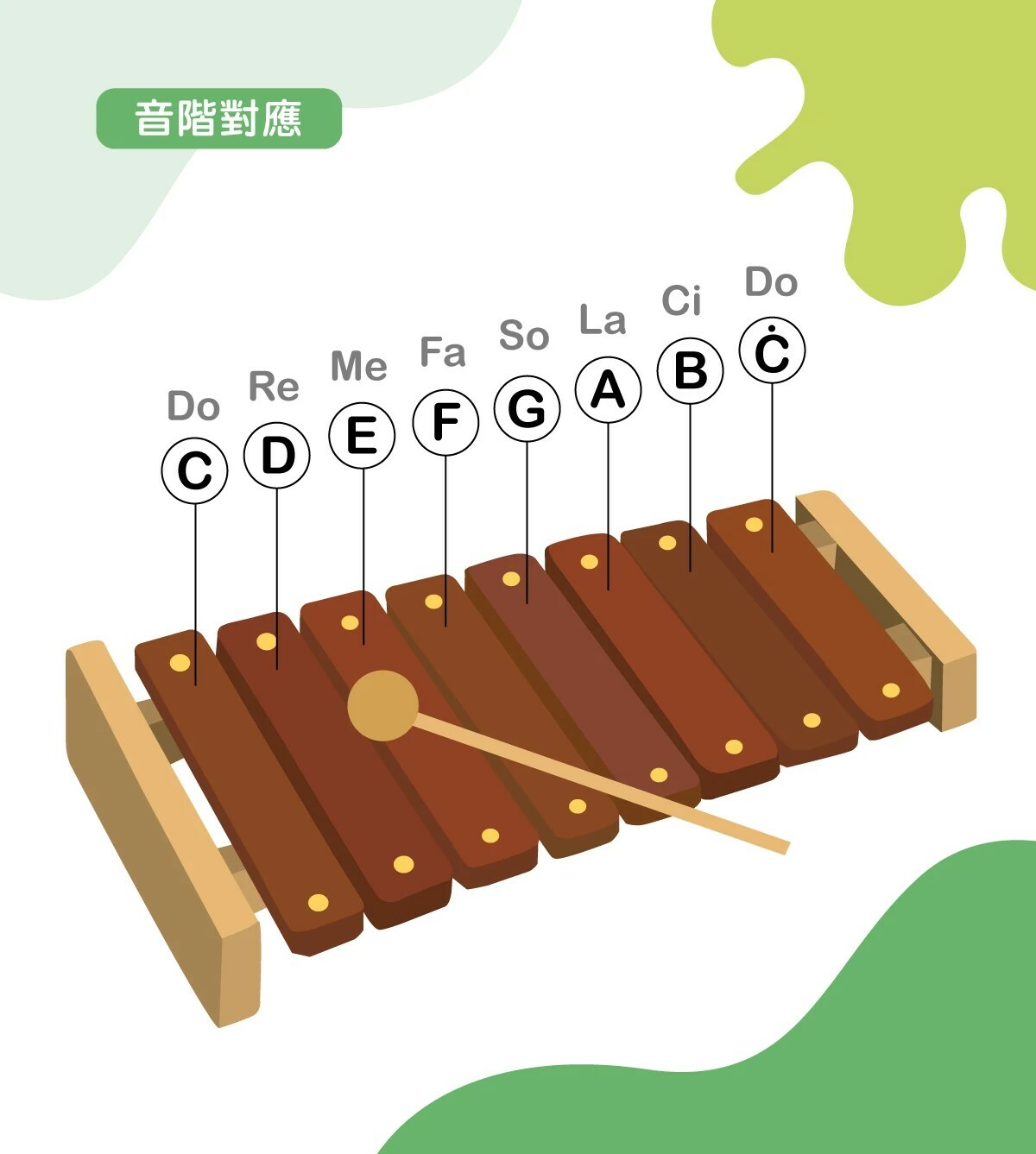 由8音組成( C、D、E、F、G、A、B、C ),天然實木製作,色彩自然呈現,聲音清脆悅耳。琴鍵皆由調音師手工調整校對,音準正確,可以真正敲出歌曲!讓接觸音樂變的更有趣。