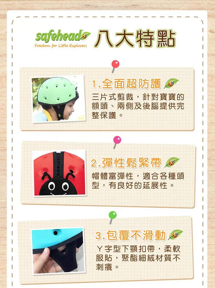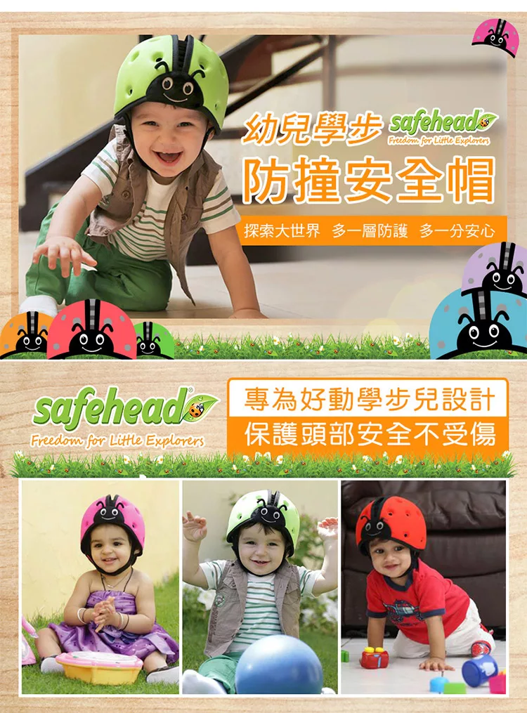 步期的寶寶充滿好奇心,急著想認識這世界,成天爬上爬下忙著探險,過程中難免發生碰撞意外,面對一不小心撞得滿頭包又哇哇大哭的小娃兒,Safehead嬰兒學步防撞帽是聰明爸媽的必備法寶。