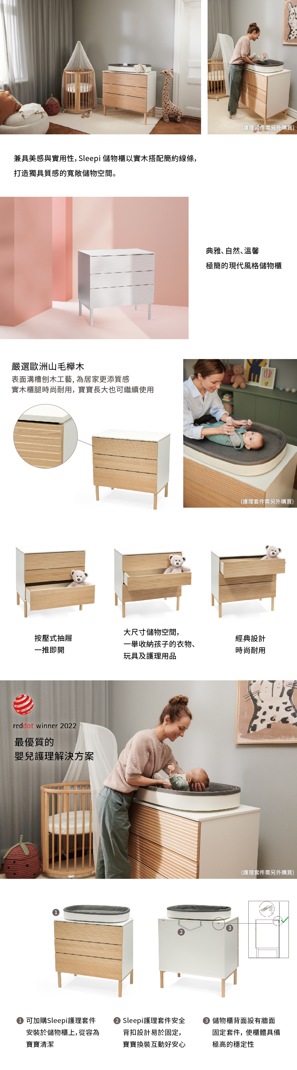 ‧ 三層抽屜提供寬敞大空間,輕鬆收納寶貝護理及日用品