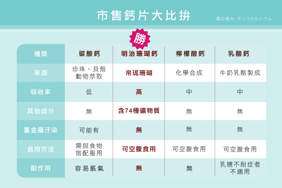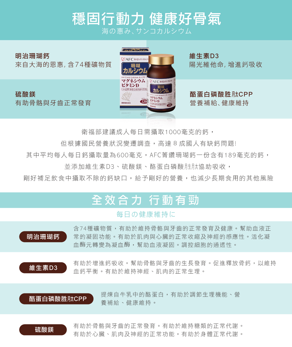 * 日本明治珊瑚鈣,有助骨骼與牙齒的生長發育