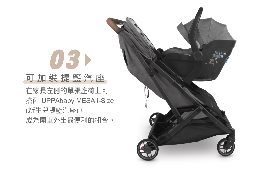 且能搭配MESA i-Size 新生兒提籃(單邊使用需搭配轉接器)