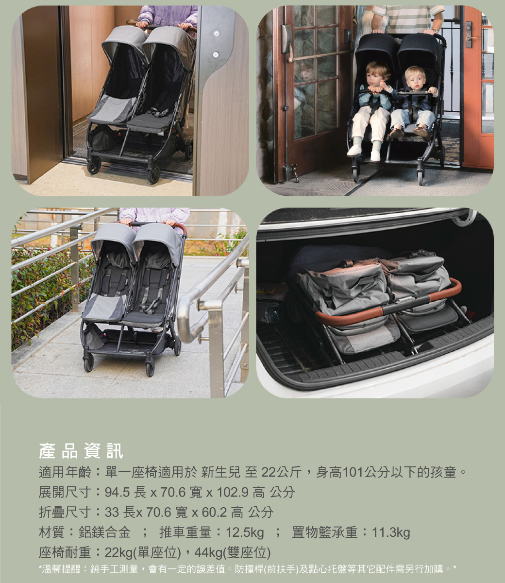 ●精心設計的寬度,符合一般門框及電梯標準,寶寶乘坐也舒適