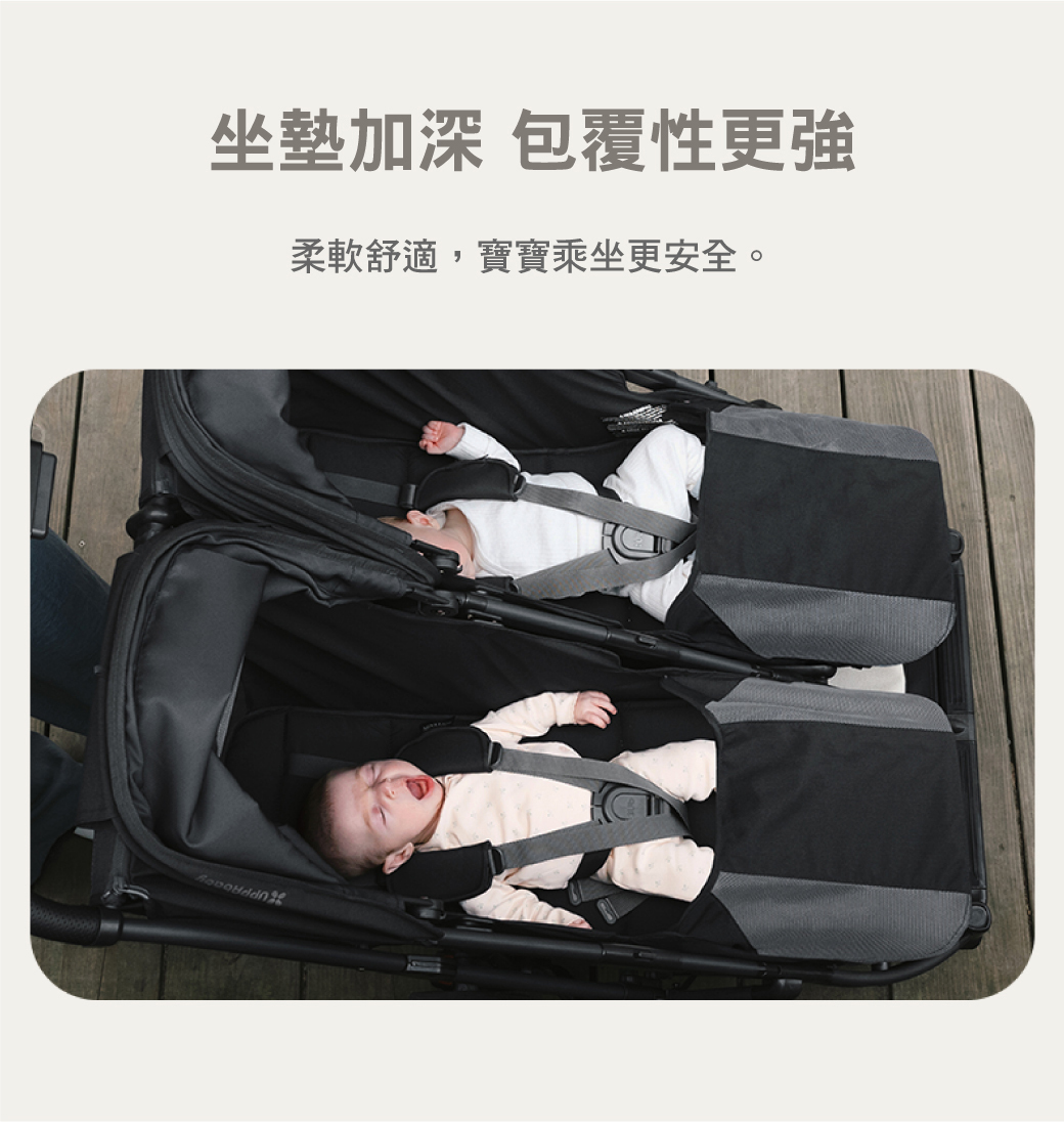 ●兩張座椅皆提供雙腳安全防護網, 讓新生兒更有包覆及安全感。