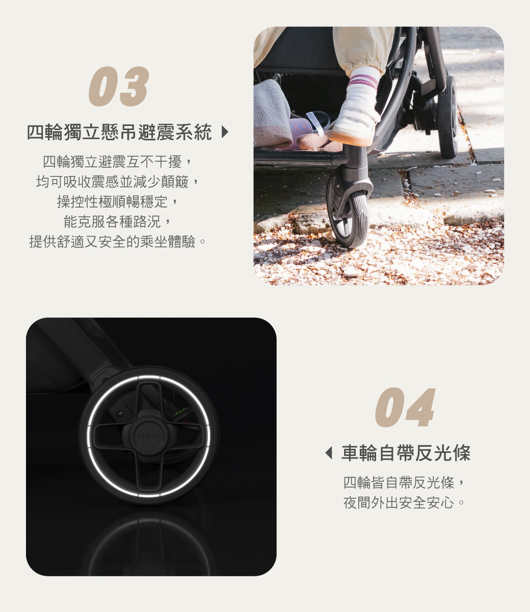 ●四輪懸吊避震系統並自帶反光條。操控性極順暢穩定,
