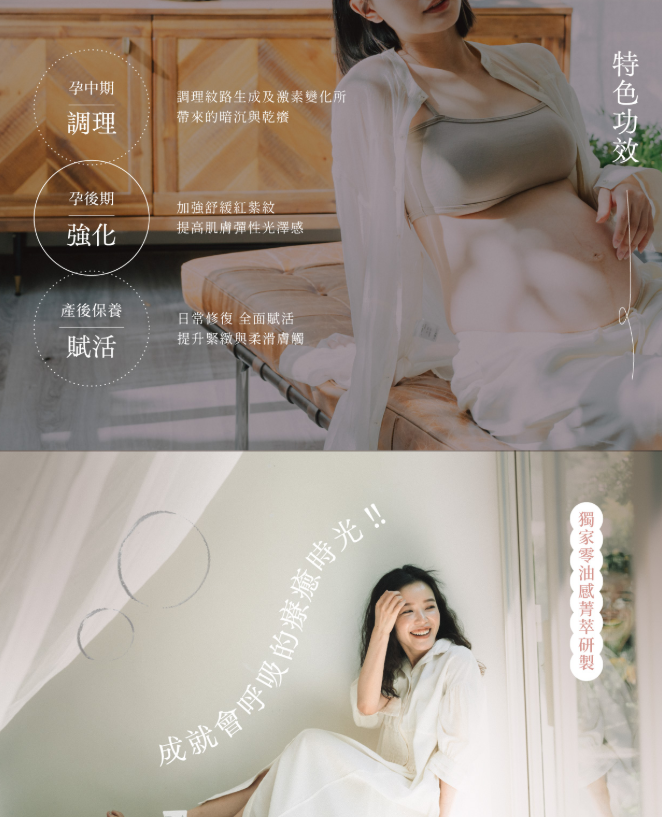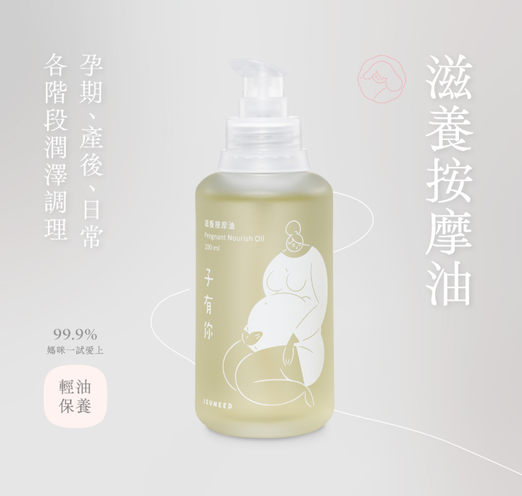 使用方法 │ 請於濕潤肌膚上使用,取適量滋養油於掌心溫熱後,塗抹全身或特殊部位,輕柔地按摩/懷孕期間可搭配子有你妊娠撫紋霜使用
